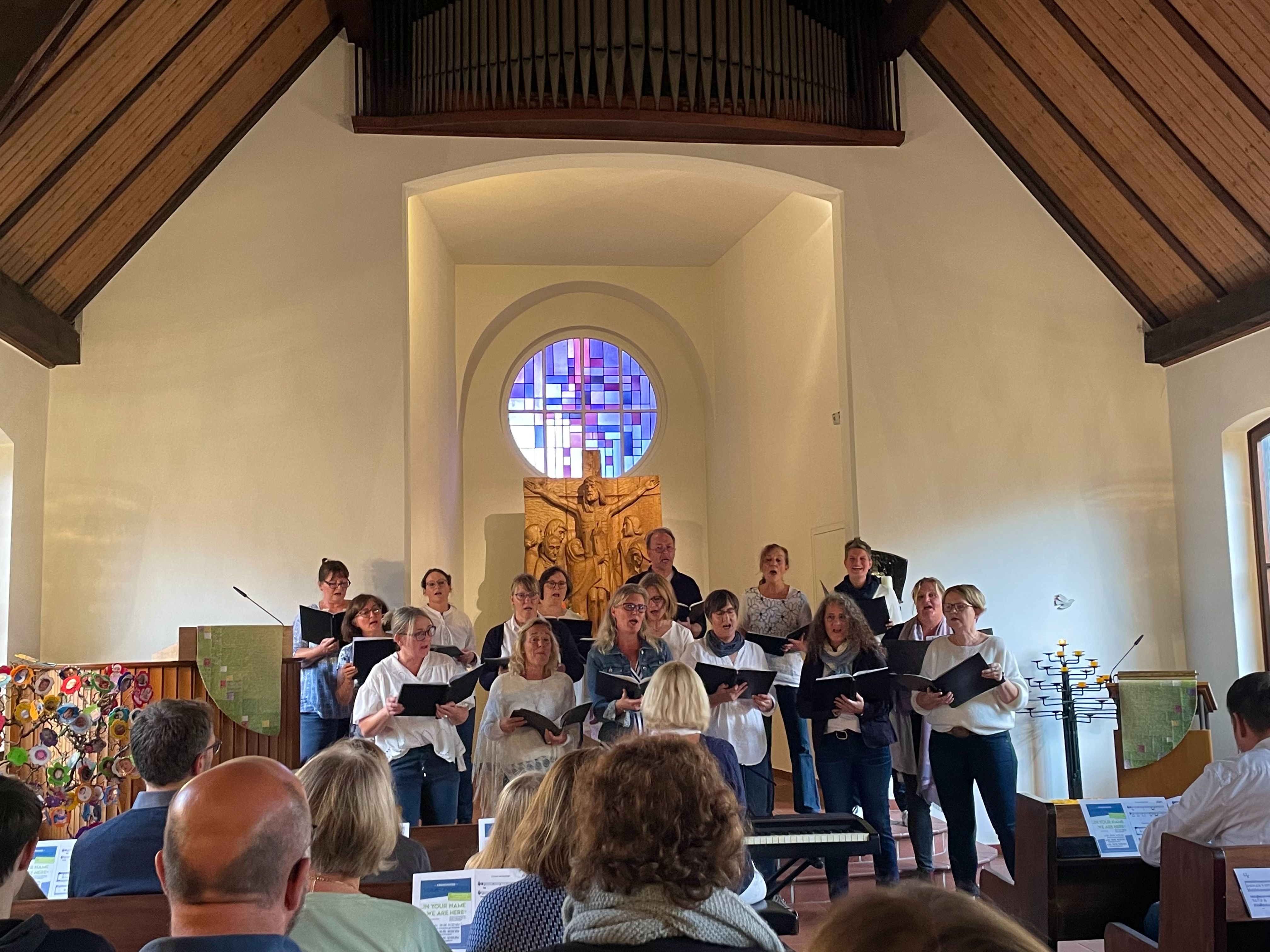 Neben der Teilnahme an Gottesdiensten veranstalten wir Konzerte in der Kreuzkirche und auch an anderen Orten, gerne auch zusammen mit dem Hamburger Chor "St. John's Gospel Voices".